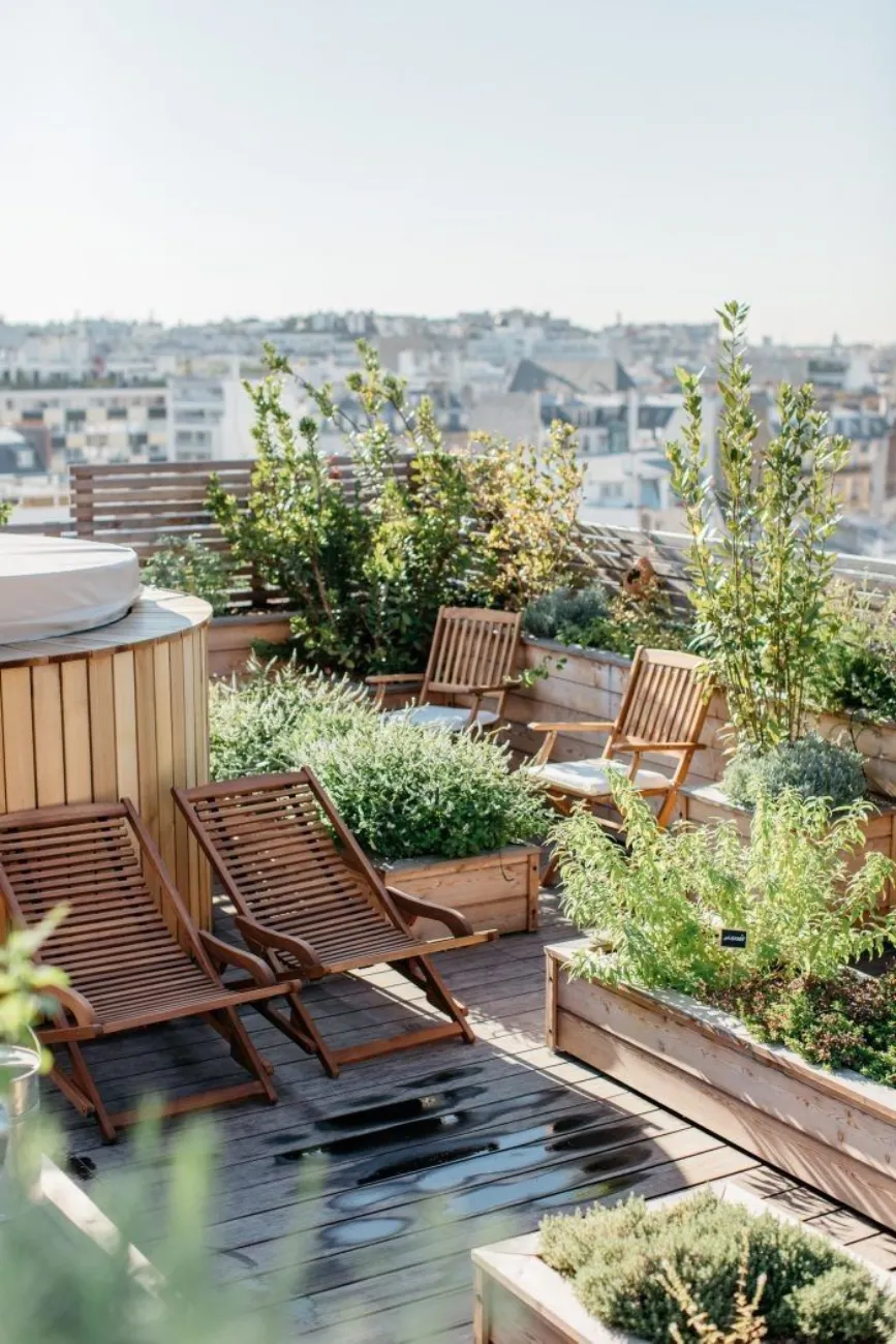 Even a compact rooftop can become a stunning, peaceful
